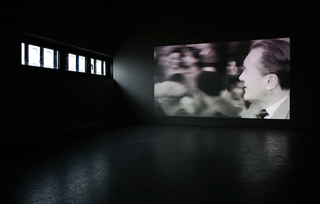 Viaggio in Italia is considered by some film theorists the beginning of modernity in cinema. In the last scene, the members of a marriage in conflict strive to reach each other in a crowd. In this video installation, this sceneis slowed-down, looped and deconstructed into two different channels following each of the lead characters, not allowing them to achieve the desired resolution, not allowing the film to end. The two audio channels increase in intensity as the characters move closer.